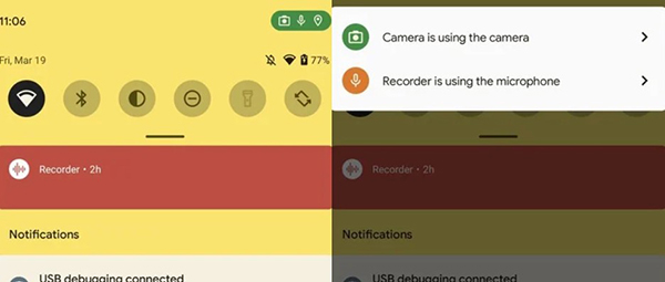 Android 12 Preview 2 có thông báo cho bạn biết khi mà các phần đang được sử dụng, cho dù là ứng dụng nào đi nữa. Đây là một lời nhắc rất hữu ích vì trong trường hợp bạn không nhớ là đã cho phép quyền truy cập cho ứng dụng nào.
