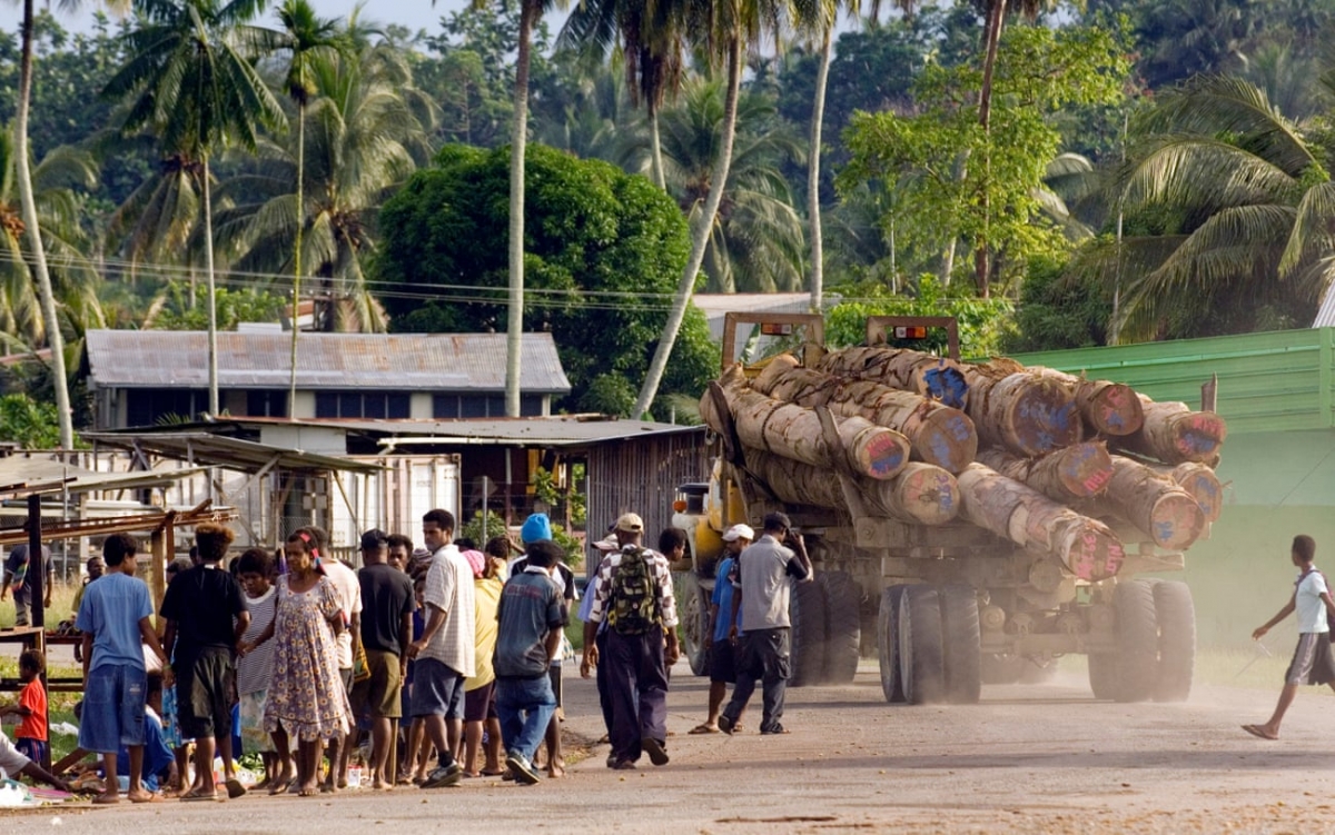 Xe tải chở gỗ xuất khẩu đi qua ngôi làng Vanimo ở Papua New Guinea. Ảnh: The Guardian