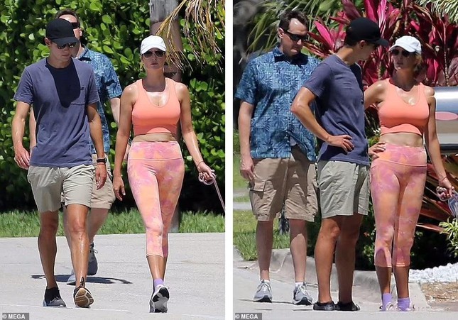 Ivanka nổi bật trên phố khi mặc bộ đồ tập, gồm áo bra và quần legging, bó sát màu hồng đào. Cô đội mũ lưỡi trai màu trắng và kính đen để che chắn trước cái nắng 31 độ C, đồng thời đi giày thể thao sáng màu trẻ trung.