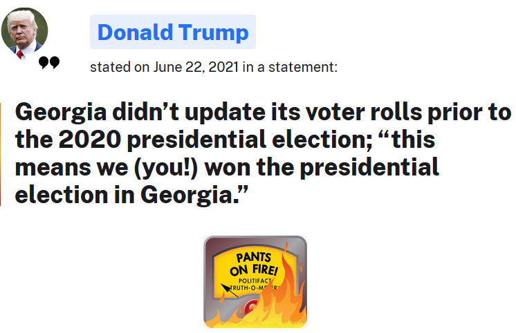 Old  Default Trump’s Pants on Fire distortion about Georgia’s voter rolls