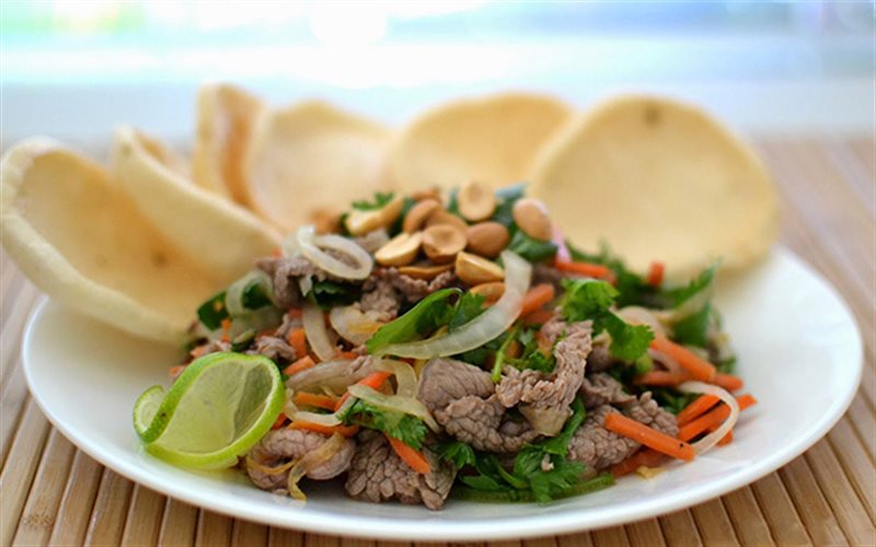 Bò tái chanh với thịt bò mềm ngọt thấm vị chua dịu của chanh.