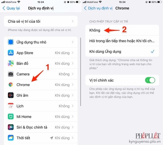 2. Cách ngừng chia sẻ vị trí với Google Chrome trên iOS