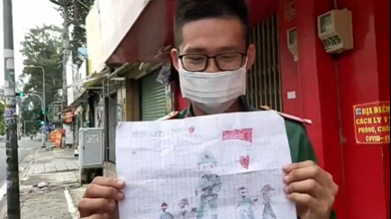 "Khi xưa người ta đi chiến trận, để ảnh người yêu, thư tay của gia đình vào ba lô để thêm động lực, vơi nỗi nhớ nhà. Giờ cũng coi như thời chiến diệt giặc "cô Vy", chú có bức vẽ của em bé để thêm sức mạnh làm nhiệm vụ nhé" - một dân mạng bình luận.