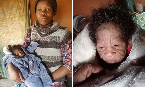 Em bé sơ sinh có khuôn mặt nhăn nheo, già nua ở thị trấn Libode, Nam Phi. Ảnh: Newsflash