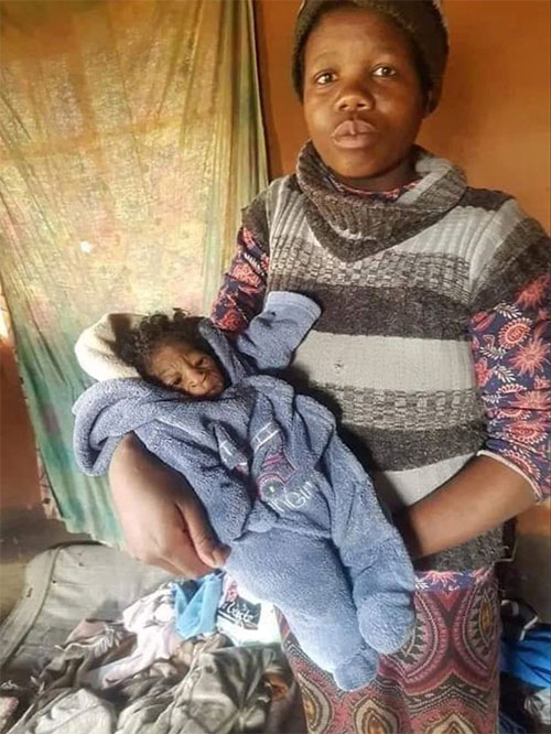 Bà mẹ 20 tuổi sinh con gái mắc hội chứng lão hóa sớm ở thị trấn Libode, Nam Phi hôm 30/8. Ảnh: Newsflash