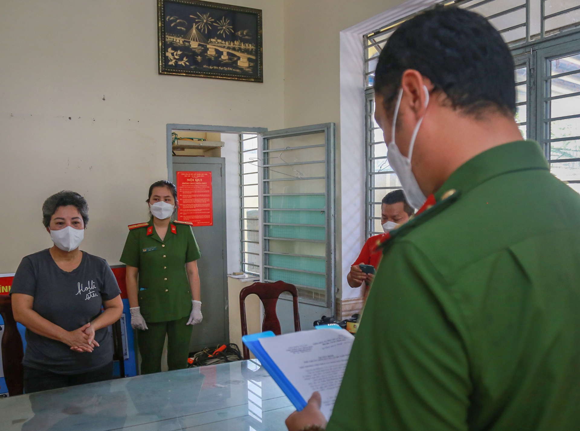 Công an tống đạt các quyết định tố tụng đối với bà Phương Dung. Ảnh: Nguyên Vũ.