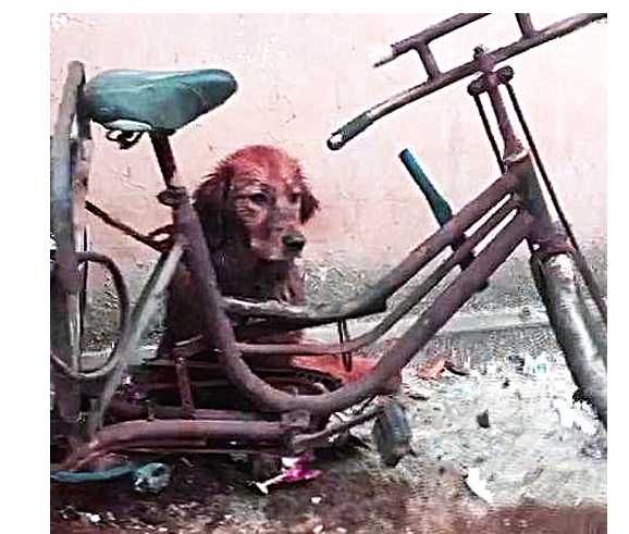 Điều đáng buồn nhất là, ngay cả khi gặp lại người chủ nhân, thay vì tỏ ra phấn khích, vẫy đuôi và nhảy chồm lên người anh như trước đây, chú lại tỏ ra vô cùng sợ hãi, vội vàng núp sau bánh xe đạp cũ kỹ.