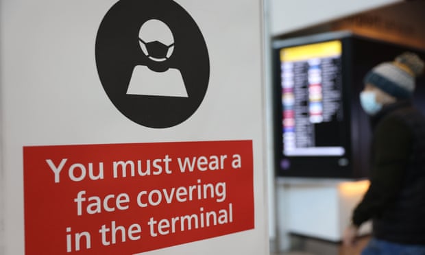 Yêu cầu đeo khẩu trang tại sân bay Heathrow sau khi phát hiện ra biến thể Omicron ở Anh. Ảnh: Getty Images