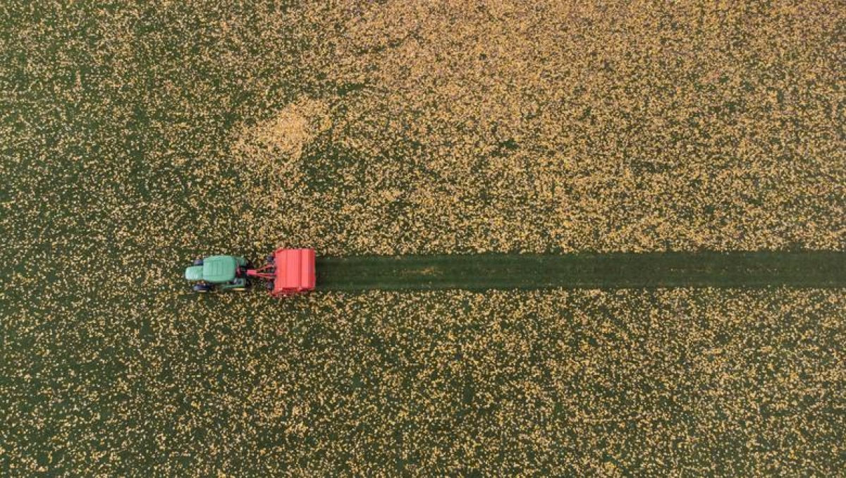 Máy quét tạo một vệt dài khi di chuyển trên trên bãi cỏ trong một công viên ở Zurich, Thụy Sĩ, ngày 3/11/2021.
