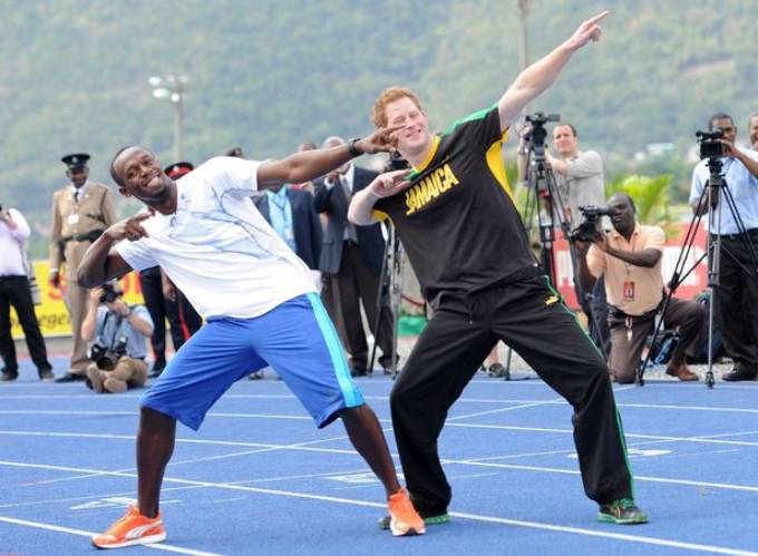 Harry gặp Usain lần đầu trên đường chạy Usain Bolt ở Đại học West Indies như một phần trong chuỗi hoạt động mừng Đại lễ Kim cương, kỷ niệm 60 năm trị vì của Nữ hoàng Anh. Ngoài Jamaica, hoàng tử còn đến thăm Belize, Bahamas và Brazil.
