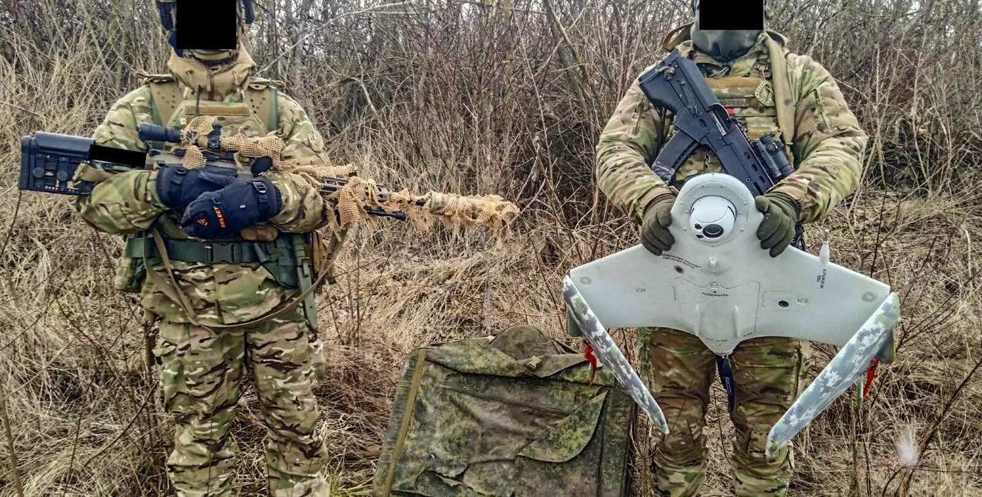 Đặc nhiệm Ukraine khoe thu giữ được UAV Eleron - một máy bay không người lái trinh sát cực kỳ tối tân của Nga. Ảnh Militarny/Facebook Lực lượng Tác chiến đặc biệt Ukraine (SOF)