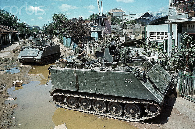 Khu vực này gần cầu chữ y : xe tăng Mỹ tham gia cùng quân lực VNCH truy quét tàn quân CS rút chạy và cố thủ trong các tòa nhà .
