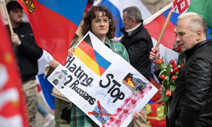 Khoảng 800 người ngày 10/4 mang theo quốc kỳ Nga xuống đường biểu tình tại thủ phủ tài chính Frankfurt của Đức để "phản đối hành vi quấy rối và thù ghét" nhằm vào cộng đồng người gốc Nga tại nước này. Cảnh sát địa phương điều động lực lượng lớn tới giám sát hoạt động.