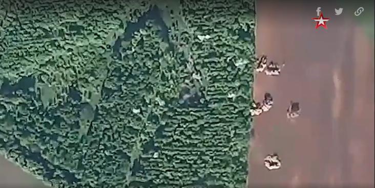 Phát hiện bị tập kích, đơn vị Ukraine vội vã kéo pháo vào khu rừng cạnh đó. UAV Nga tiếp tục theo dõi mục tiêu, trong khi nhiều quả đạn tiếp tục tấn công vào khu rừng này.