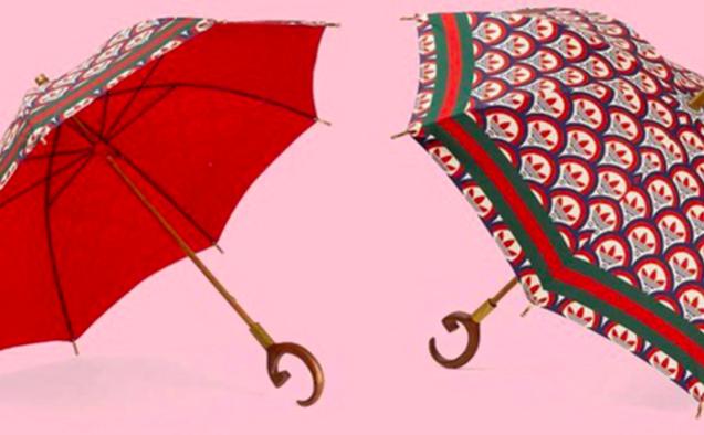 Ô Gucci x Adidas có họa tiết đẹp, với tay cầm bằng gỗ bạch dương và có giá 1.300 USD. Tuy nhiên chiếc ô lại không thể che mưa mà được miêu tả là chỉ đi trời nắng và dùng làm đồ trang trí.