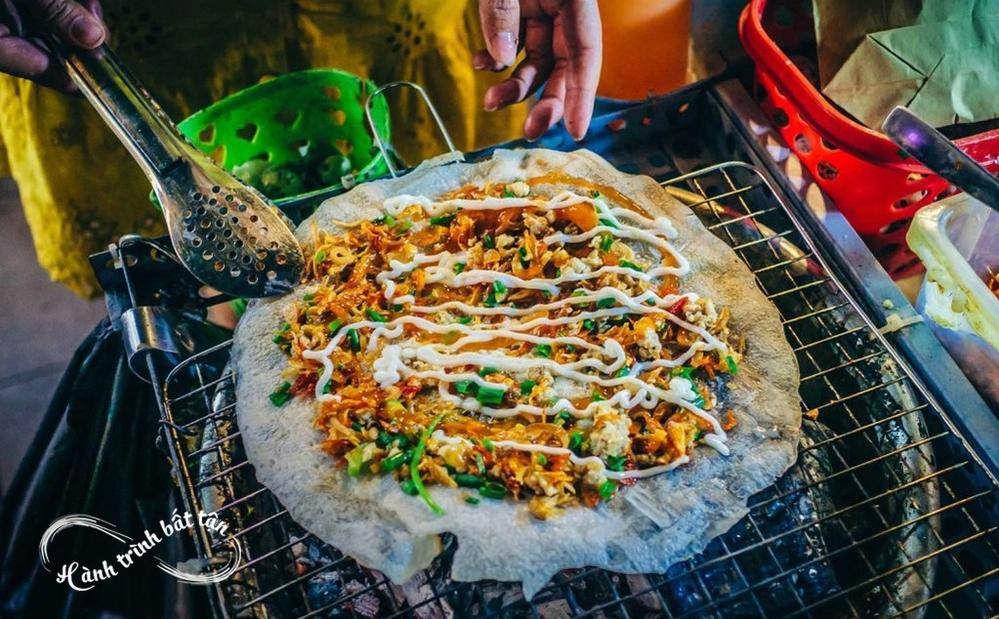 Những miếng bánh làm từ bột gạo, được chiên giòn trên vỉ nướng hình tròn, lớn. Khi gần hoàn thành, một quả trứng đã được đánh tan được đổ lên để kết dính mọi thứ với nhau, sau đó phủ hành lá thái nhỏ và được ăn cùng nước chấm đậm đà và đu đủ xanh bào sợi.
