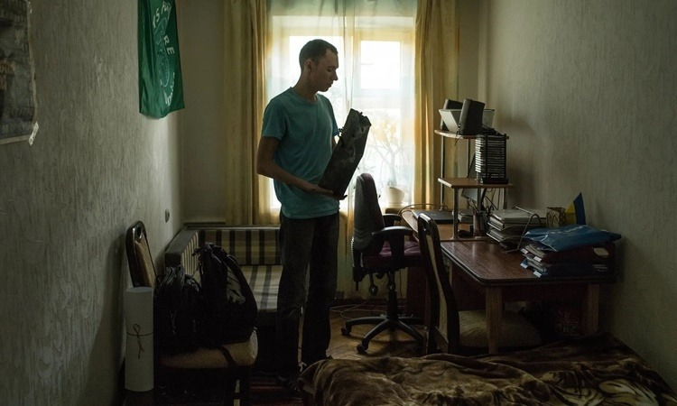 Mảnh thép xù xì, xấu xí đó giờ đây trở thành ngôi sao trong bộ sưu tập vật phẩm chiến tranh từ cuộc xung đột Nga - Ukraine của anh. Chúng gồm tất cả mọi thứ, từ hộp đạn, mảnh pháo đến một đôi ủng Nga màu đen mà anh tìm thấy ở thành phố Bucha.