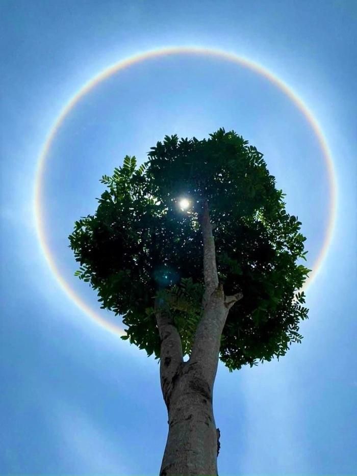 Ngay khi hiện tượng lạ này xuất hiện, nhiều người dân đã hiếu kỳ chụp ảnh rồi chia sẻ lên mạng xã hội. Nhiều người dân cho biết đến khoảng 12h trưa, quầng sáng hiện rõ hơn và có nhiều màu như màu của cầu vồng tỏa ra.