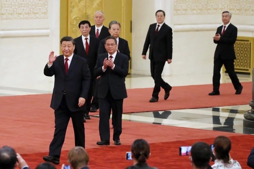Bảy thành viên Ban Thường vụ Bộ Chính trị Trung ương Đảng Cộng sản Trung Quốc khóa 20: Tổng Bí thư, Chủ tịch nước Tập Cận Bình (chính giữa), (bên trái từ trên xuống) Bí thư Thượng Hải Lý Cường, Bí thư thứ nhất Ban Bí thư Vương Hỗ Ninh, Chủ nhiệm Văn phòng Trung ương đảng Đinh Tiết Tường. (Bên phải từ trên xuống) Bí thư Ủy ban Kiểm tra Kỷ luật Trung ương đảng Triệu Lạc Tế, Bí thư Thành ủy Bắc Kinh Thái Kỳ, Bí thư Tỉnh ủy Quảng Đông Lý Hi (Ảnh: Reuters).