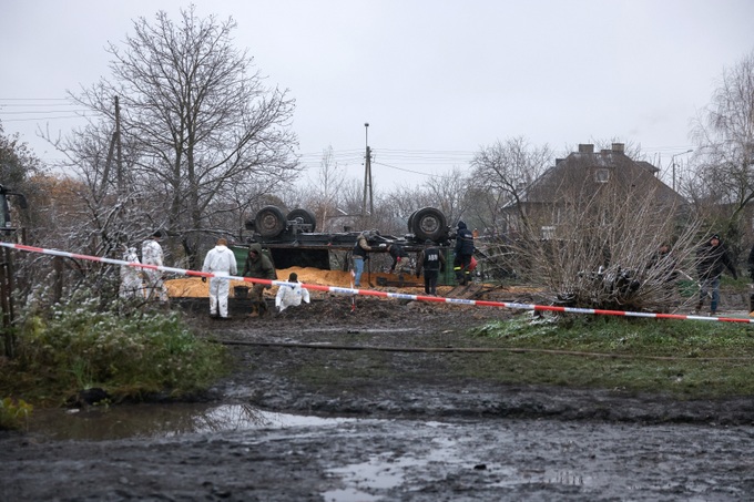 Hiện trường vụ tên lửa rơi lạc xuống Ba Lan hồi tuần trước (Ảnh: Reuters).