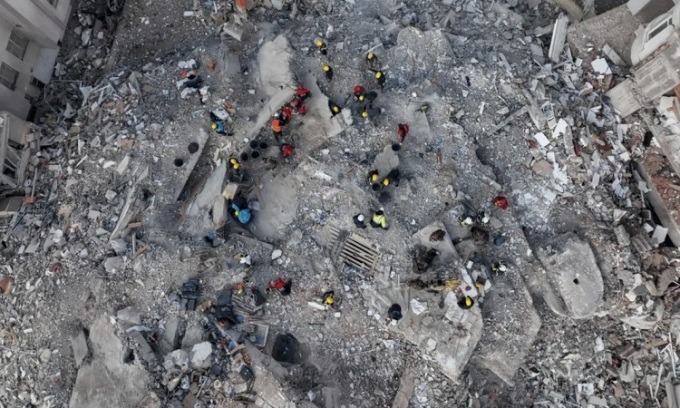 Nhân viên cứu hộ tìm kiếm người gặp nạn ở Gaziantep, Thổ Nhĩ Kỳ hôm 10/2. Ảnh: Anadolu Agency