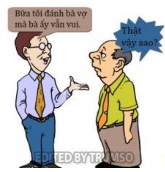 - Hôm qua tôi đánh cho vợ một trận ra trò mà bà ấy vẫn vui ông ạ.