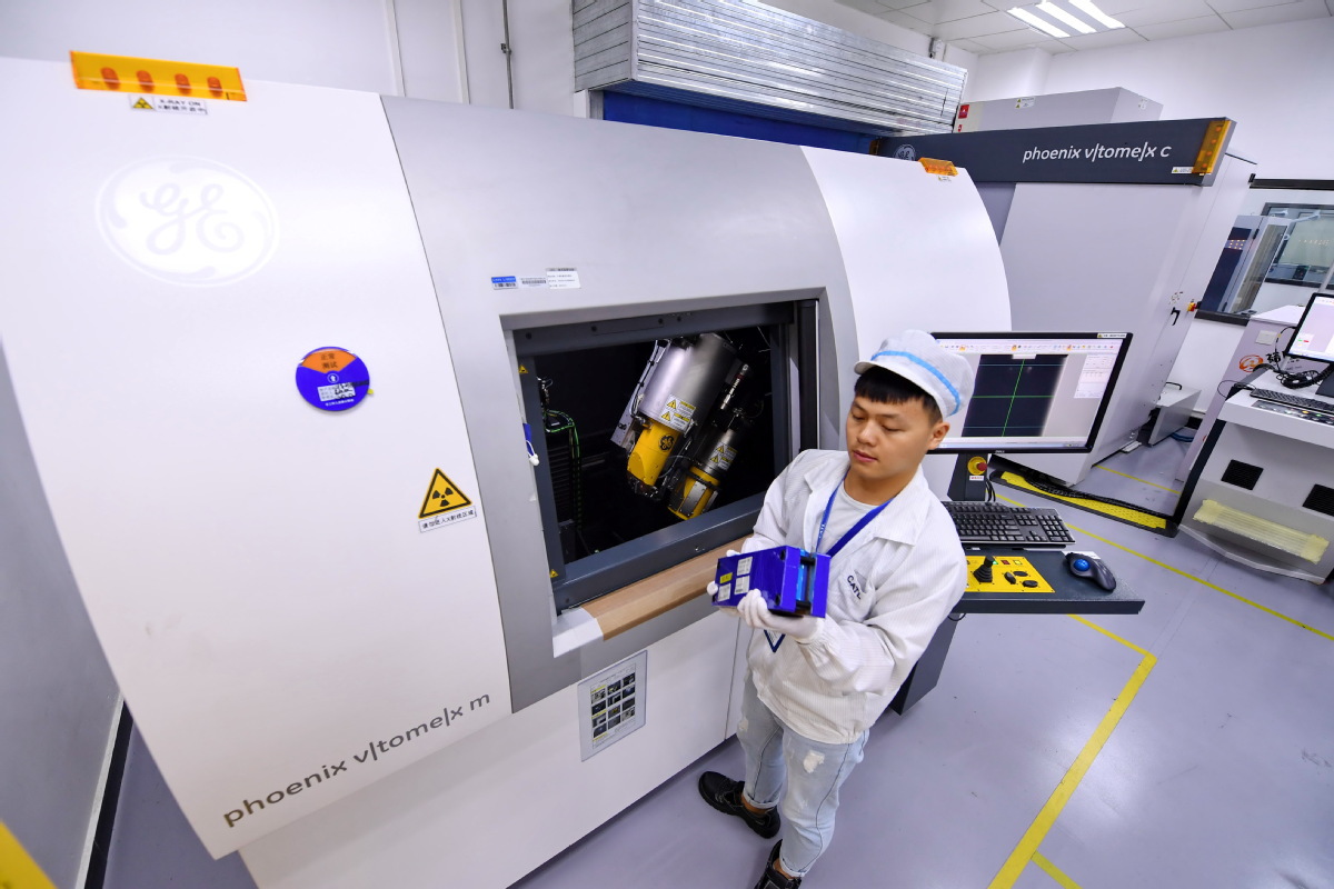 Kỹ thuật viên tại CATL kiểm tra bộ phận pin xe điện tại nhà máy ở Ninh Đức, Phúc Kiến. Ảnh: Xinhua