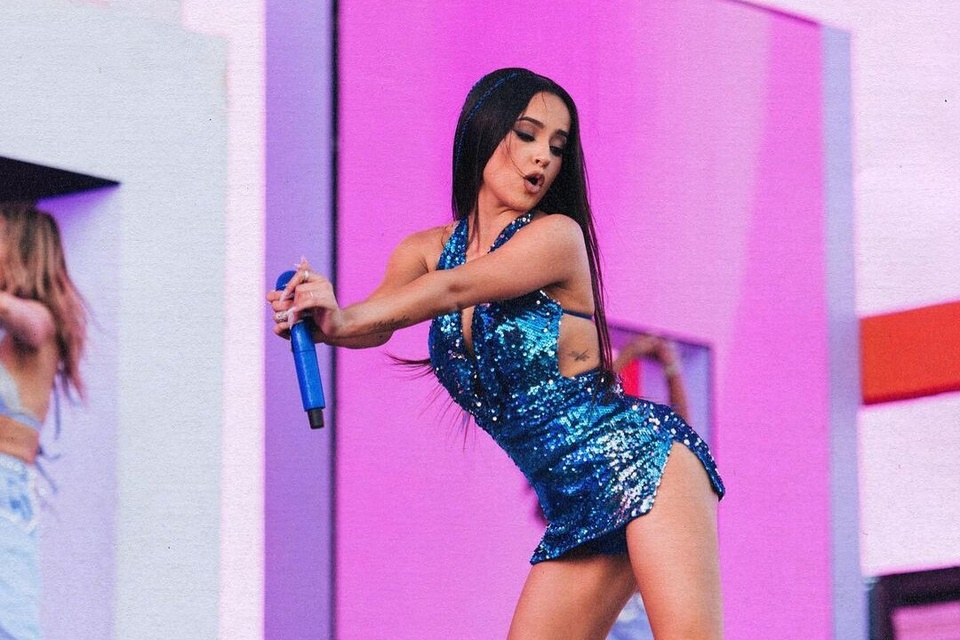 Becky G hưởng ứng phong cách disco với váy ngắn chất liệu sequin. Ảnh: @iambeckyg.