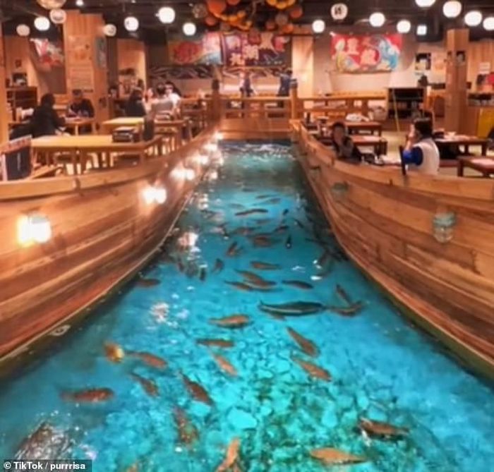 Trong video hút hơn 17 triệu lượt xem của ḿnh, blogger Tina Pik cho thấy cách nhân viên nhà hàng đánh trống rộn ràng khi thực khách bắt được một con cá thành công và cách các đầu bếp biến món sashimi ngon tuyệt hoặc cá chiên gịn hoặc hấp.