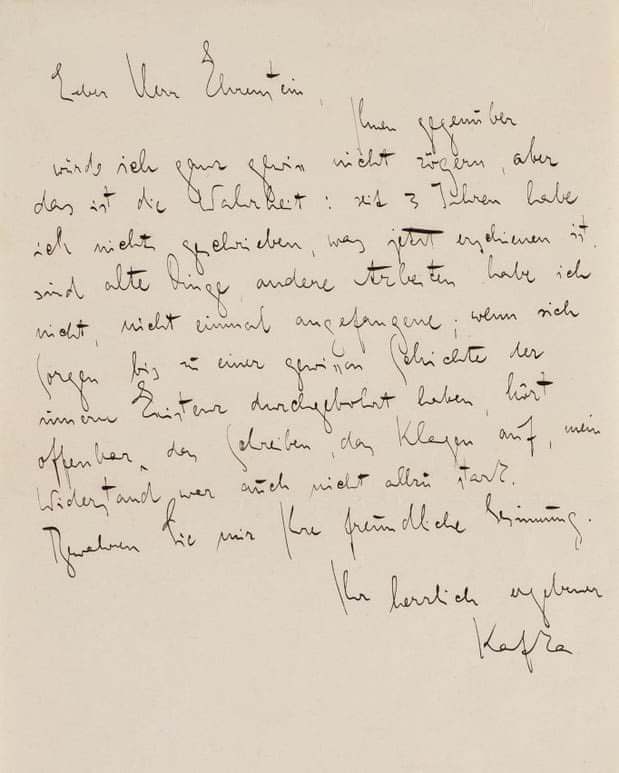 Theo CNN hôm 4/6, thư là lời đáp của Kafka, khi nhà thơ người Áo Albert Ehrenstei ngỏ ý muốn ông đóng góp cho tạp chí văn học Die Gefährten (The Fellows). Nhà văn trăn trở: ''Tôi đã không viết ba năm qua. Những gì đã xuất bản bây giờ đều là chuyện cũ, tôi không có tác phẩm nào khác''.