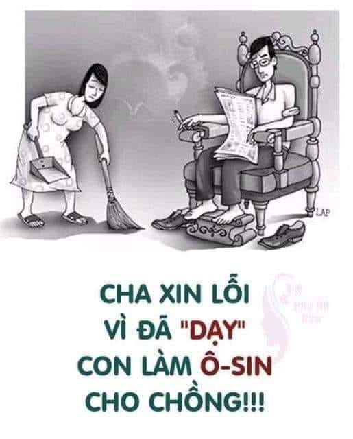Con gái, cha xin lỗi vì sau một ngày cùng làm việc vất vả như nhau ở ngoài đồng, cha đã cho phép mình được ngồi chơi nhàn nhã và xem chuyện mẹ con một mình tất bật với việc nhà là chuyện hiển nhiên. Chính cha đã “dạy” con rằng chồng có quyền hưởng thụ, còn vợ có nghĩa vụ phục vụ chồng.
