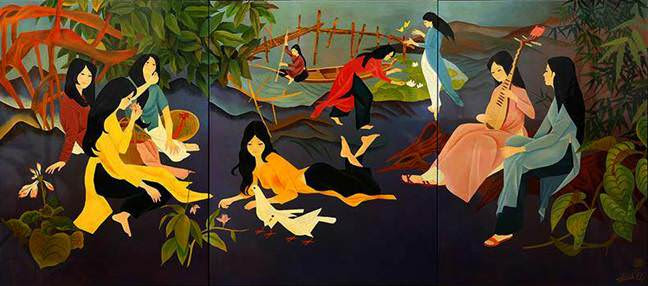 Những tác phẩm đắc ý nhất cùa ông là tranh lụa, tôi dược may mắn có những tác phẩm đắc ý của ông: