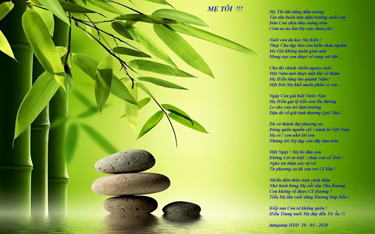 Mẹ là 1 Chủ Đề Cao Quí trong Cuộc Sống !... HDD xin đăng Bài Tranh Thơ MẸ VÀ QUÊ HƯƠNG của mình ...Để thân tặng các bạn đang còn Mẹ !...hay những ai không còn Mẹ như Mình ...Như nỗi nhớ vô vàng với Công Đức vô lượng của Mẫu Thân !...Nhân NGÀY LỄ MẸ 08 - 05 - 2022 vào Chủ Nhật ngày mai !...