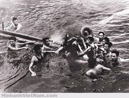 Các chiến sĩ tự vệ Hà Nội cứu vớt phi công John S. McCain ở Hồ Trúc Bạch – (Ảnh: Internet)