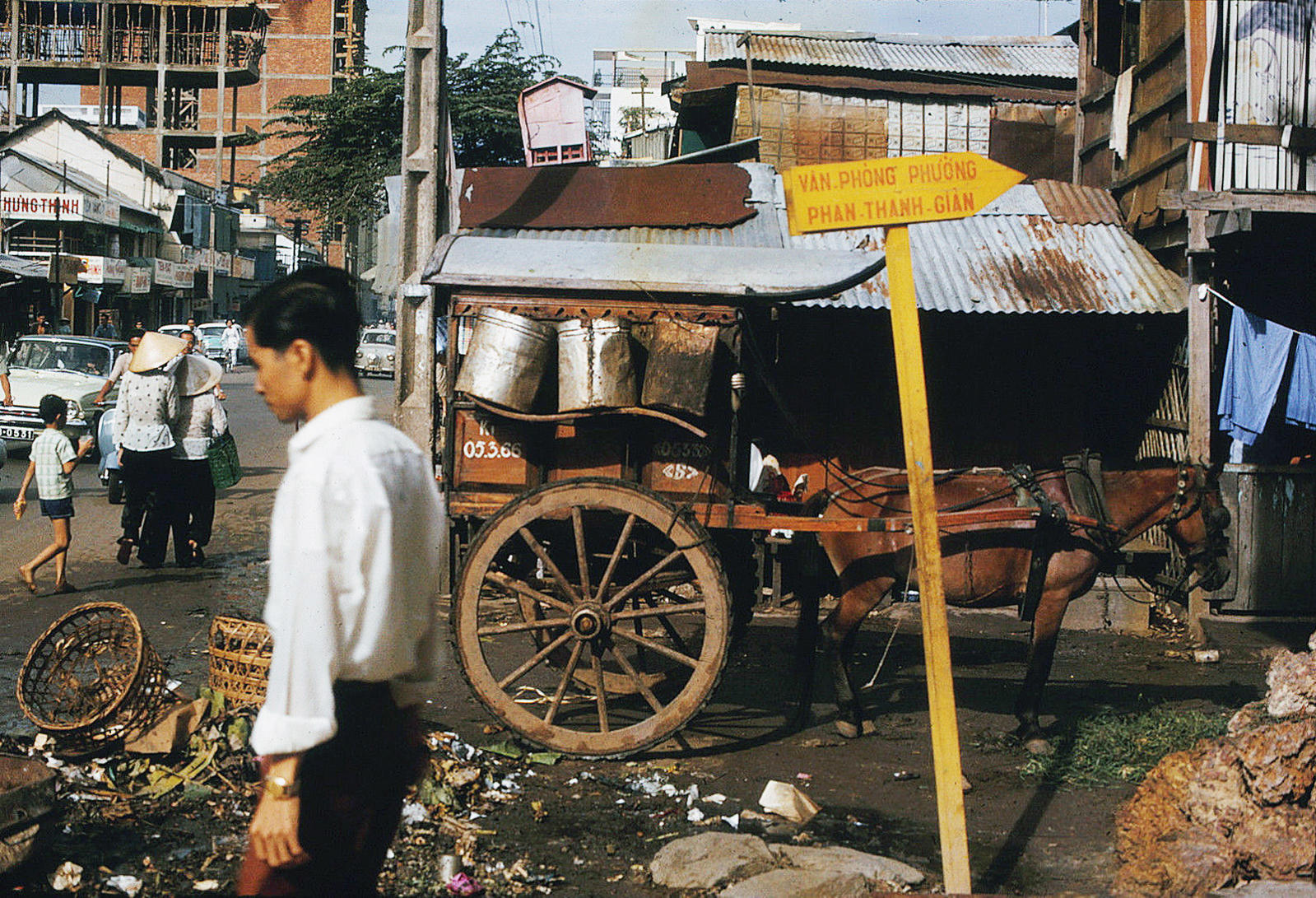 Xe thổ mộ trên đường phố Sài Gòn năm 1965 – Đây là loại phương tiện đi lại phổ biến ở vùng Sài Gòn-Gia Định của Việt Nam vào những năm 50 của thế kỷ XIX.