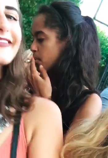 Một video dài 9 giây được trang tin trên đăng tải cho thấy Malia cầm một vật trông như điếu thuốc đằng sau các cô gái đang nhảy nhót.