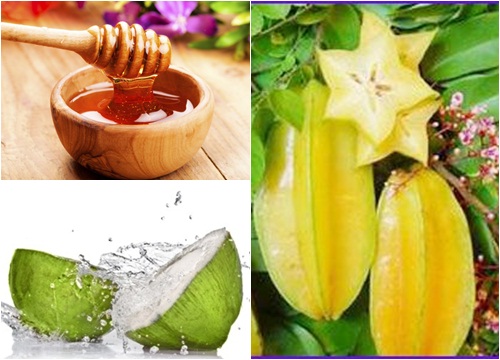 Bước 2: Cắt khế thành miếng nhỏ, dùng máy xay sinh tố hoặc cối giã nghiền nát, rồi đổ 200 ml nước dừa tươi, trộn đều hỗn hợp.