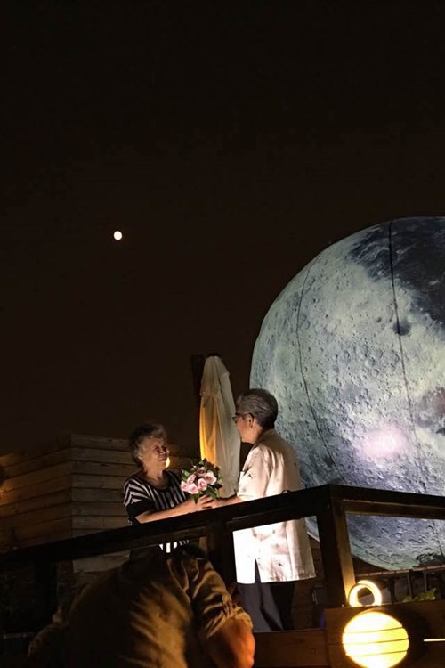 Hai ngày trước, dự báo thời tiết ở Bắc Kinh vào hôm Trung Thu sẽ xấu, có khả năng không quan sát được trăng tròn. Một cụ ông đã chuẩn bị một mô hình Mặt Trăng thật to tại một nhà hàng ở Hậu Hải, khu phố vui chơi về đêm nổi tiếng ở Bắc Kinh, để làm vợ bất ngờ.