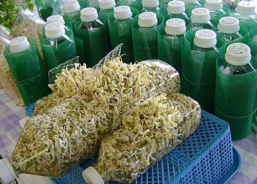 – Cho đỗ đă ngâm vào chai, mỗi ngày cho đỗ uống nước 30 phút bằng cách đổ ngập nước rồi lại chắt nước đi.