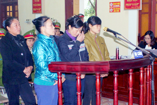 TAND thị xã Kỳ Anh (Hà Tĩnh) vừa mở phiên sơ thẩm xét xử bị cáo Nguyễn Thị Hồng (44 tuổi), Bùi Thị Nhung, Nguyễn Thị Tuyết (49 tuổi), Nguyễn Thị Lý (48 tuổi), Lê Thị Lan (47 tuổi) và Nguyễn Thị Ngọc Thảo (28 tuổi) về tội Gây rối trật tự công cộng.