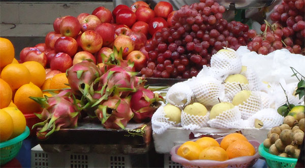 Chỉ cách vài bước chân, trong nhà lồng chợ đầu mối Thủ Đức, cam sành miền Tây giá 25.000 - 30.000 đồng/kg, còn tại cổng chính chợ này, cam được rao của TQloại nhỏ chỉ 120.000 - 130.000 đồng/sọt 18 - 20kg (chỉ khoảng 6.000 đồng/ký). Nho đen trái to chỉ từ 100.000 - 120.000 đồng/thùng 7kg (khoảng 17.000 đồng/ký); hồng 100.000 - 110.000 đồng/thùng 9kg (hơn 9.000 đồng/ký), táo 60.000 đồng/thùng 8kg (7.500 đồng/ký)... Nhiều chủ vựa còn cho biết nếu mua số lượng nhiều, giá giảm thêm 10-15%.