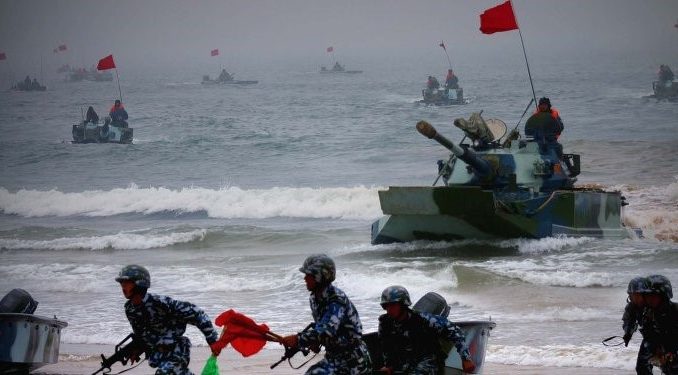 Binh sĩ Trung Quốc trong một cuộc diễn tập đổ bộ.