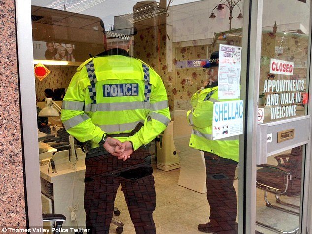 Cảnh sát Anh khám xét một tiệm làm móng của người Việt ở thành phố Reading - Ảnh: TWITTER