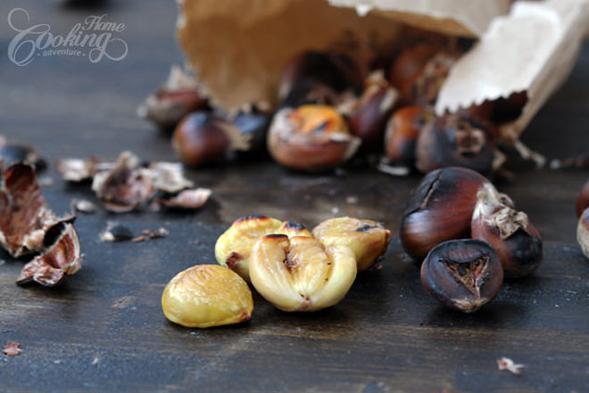 -Bí quyết để dễ bóc vỏ hơn là chúng ta có thể cho hạt dẻ đang nóng vào một túi vải rồi ủ trong 10 phút, lớp vỏ bên ngoài sẽ mềm mà ruột bên trong vẫn còn giòn, nóng.