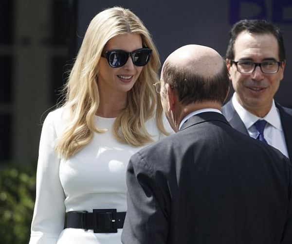 Cũng trong chiều qua, Ivanka, con gái đầu của ông Trump, cũng tới dự sự kiện. Cô diện áo màu trắng, thắt đai; xõa tóc tự nhiên và đeo kính đen.