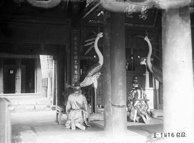 Các viên quan đứng trước Đại Bái Đường. Ảnh tư liệu.