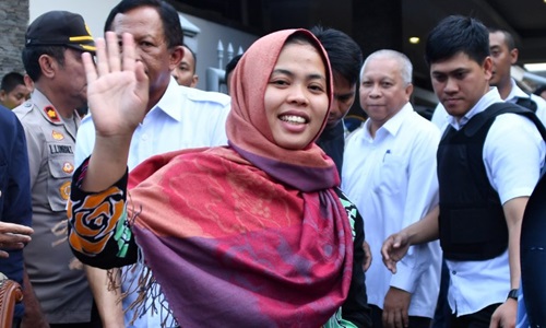Sau khi được tòa tối cao ở Malaysia phóng thích vài giờ, Siti Aisyah lên máy bay về nước. Đi cùng với cô là Bộ trưởng Luật và Nhân quyền Indonesia.