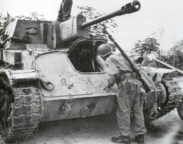 Pháo tự hành chống tăng Su-76 của Triều Tiên bị Mỹ bắn hạ. Nguồn ảnh: Foto.