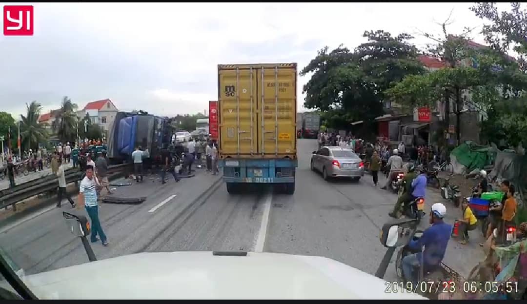 Sau vụ tai nạn trên rất nhiều người thân nạn nhân, thậm chí người dân xung quanh và công nhân đi làm qua đã đứng lại theo dõi hiện trường. Đúng lúc này xe ô tô tải tránh một phương tiện khác trên đường đã bất ngờ lao vào vị trí nhiều người dân đang đứng rồi lật nghiêng.