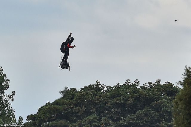 Franky Zapata từng thu hút sự chú ý của công chúng với màn biểu diễn ấn tượng khi bay lượn trên bầu trời thủ đô Paris tại lễ diễu binh kỷ niệm Quốc khánh Pháp hôm 14/7. Zapata cho biết thử thách tiếp theo của anh là chế tạo ô tô bay. (Ảnh: PA)